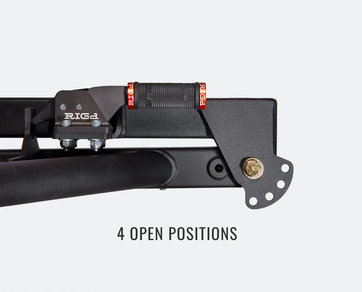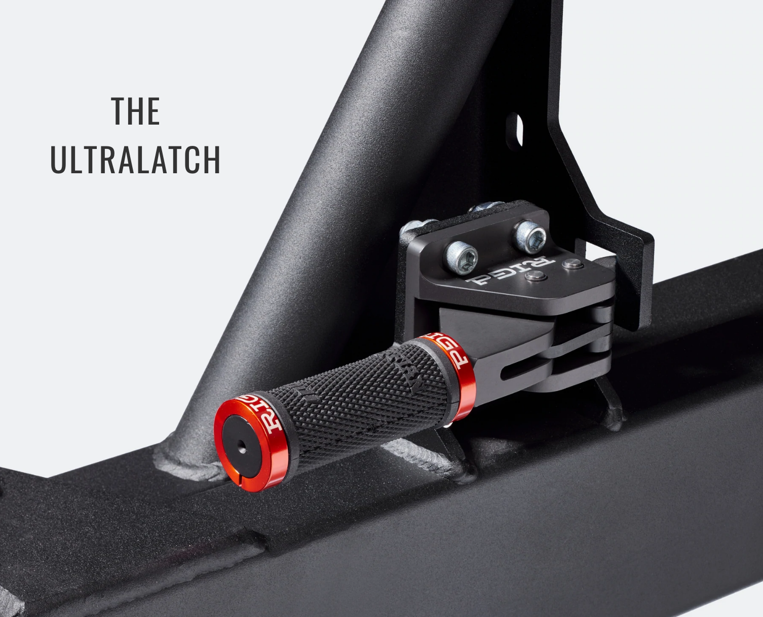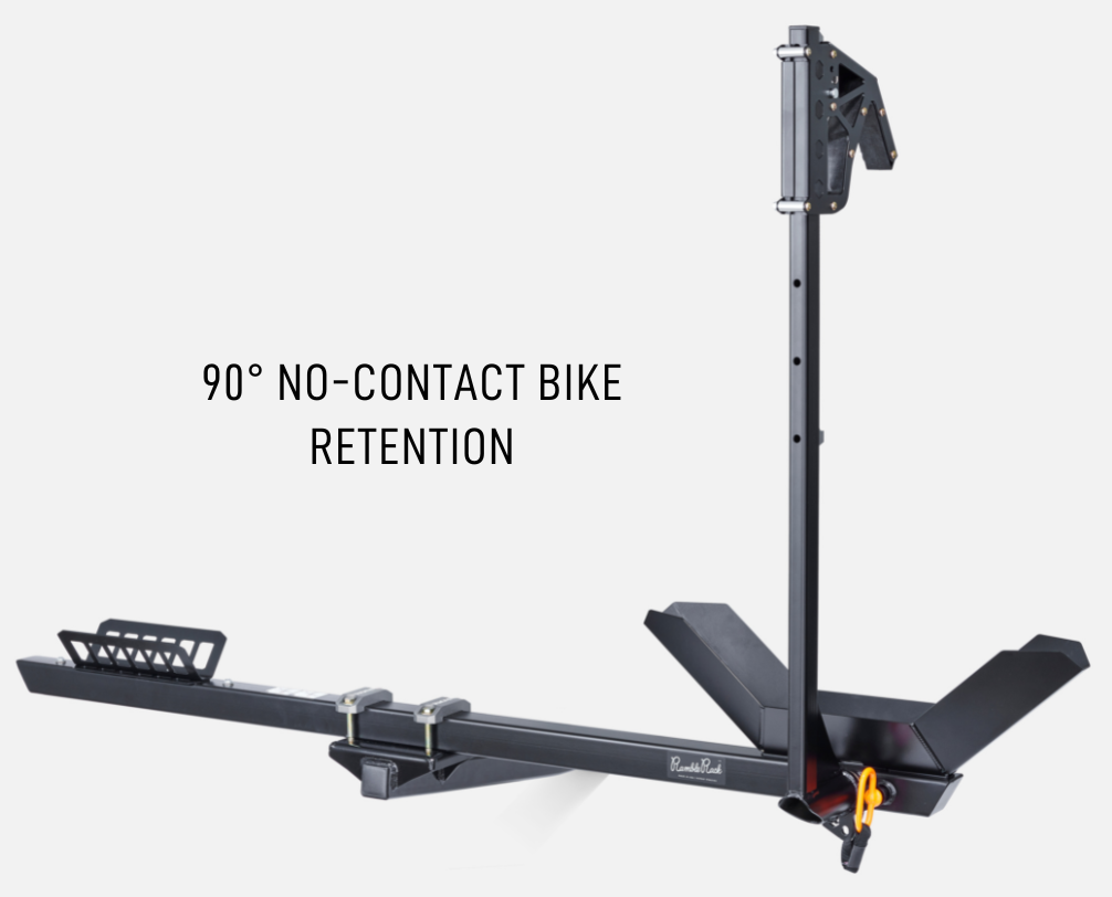 RambleRack™ is designed specifically for use on the UltraSwing, but will also work great on other off-road swing-out bumpers or as a static bike rack plugged straight into your hitch. RambleRack is our single-bike option with a static high-clearance stinger.