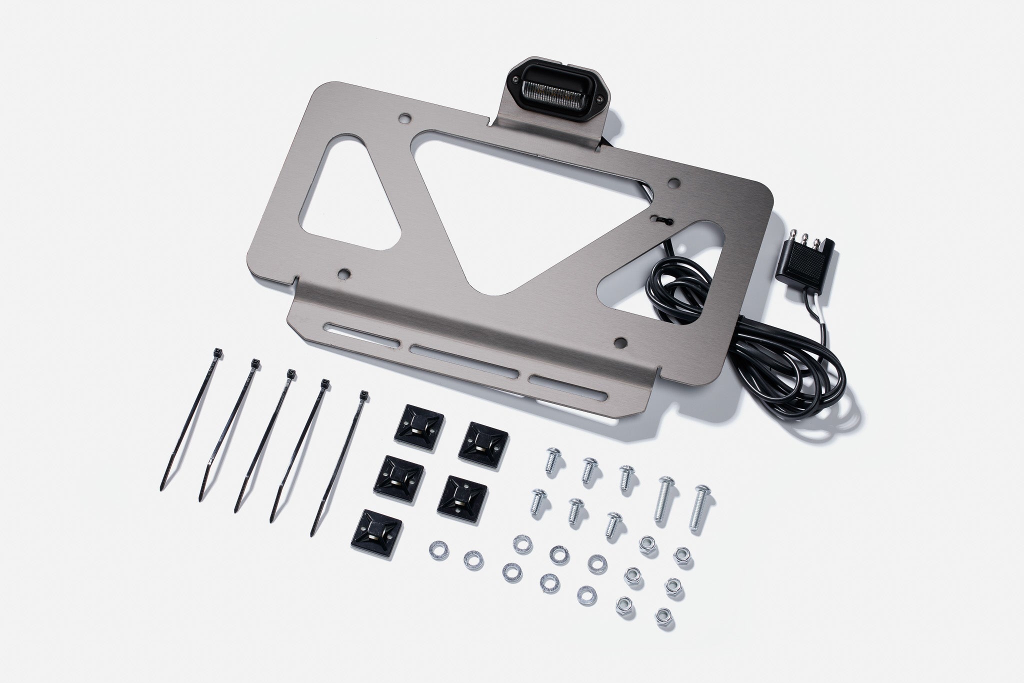 Now featuring a stainless steel brushed finish! Our license plate light kit comes pre-wired and assembled for a truly plug-n-play experience. Comes with all necessary mounting hardware and wire retention.This version is for the UltraSwing only.